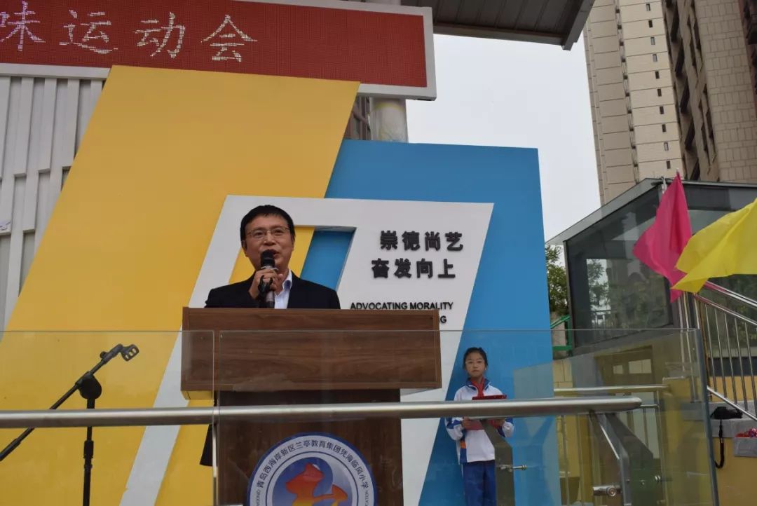 凭海临风小学执行校长丁宏亮隆重宣布:青岛西海岸新区凭海临风小学2019年秋季趣味运动会正式开幕!