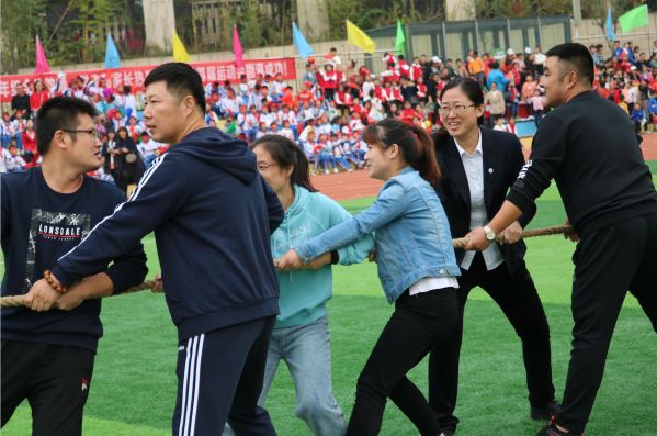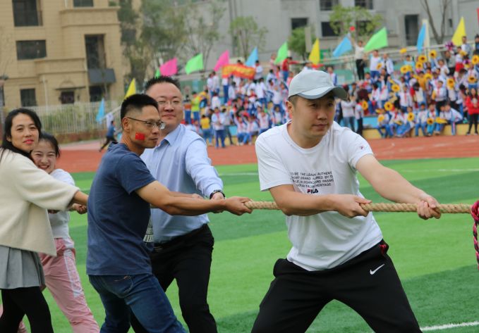 集体拔河比赛开始了!大家憋足了劲,加油!加油!加油!呐喊声、掌声、笑声、欢呼声此起彼伏, 原来,是教师和家长的拔河比赛!家校合作,其利断金!