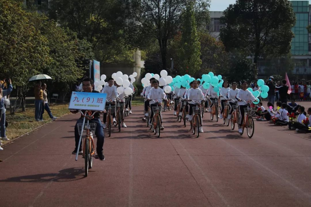 *将环保出行、安全骑行等主题教育与班级入场秀相结合,是本届运动会开幕式的一大亮点: