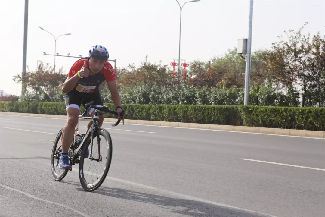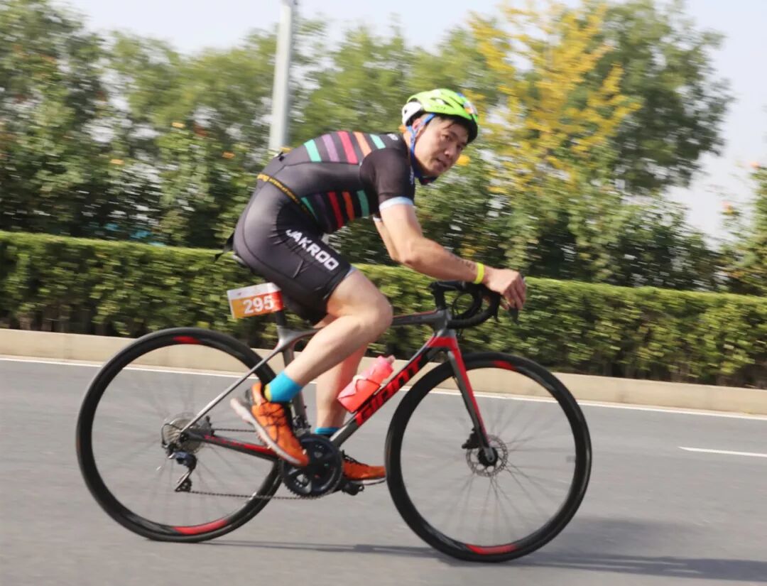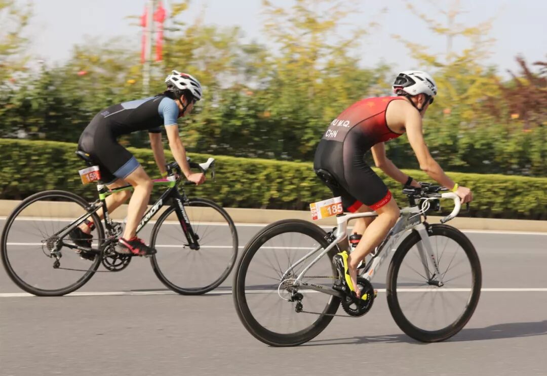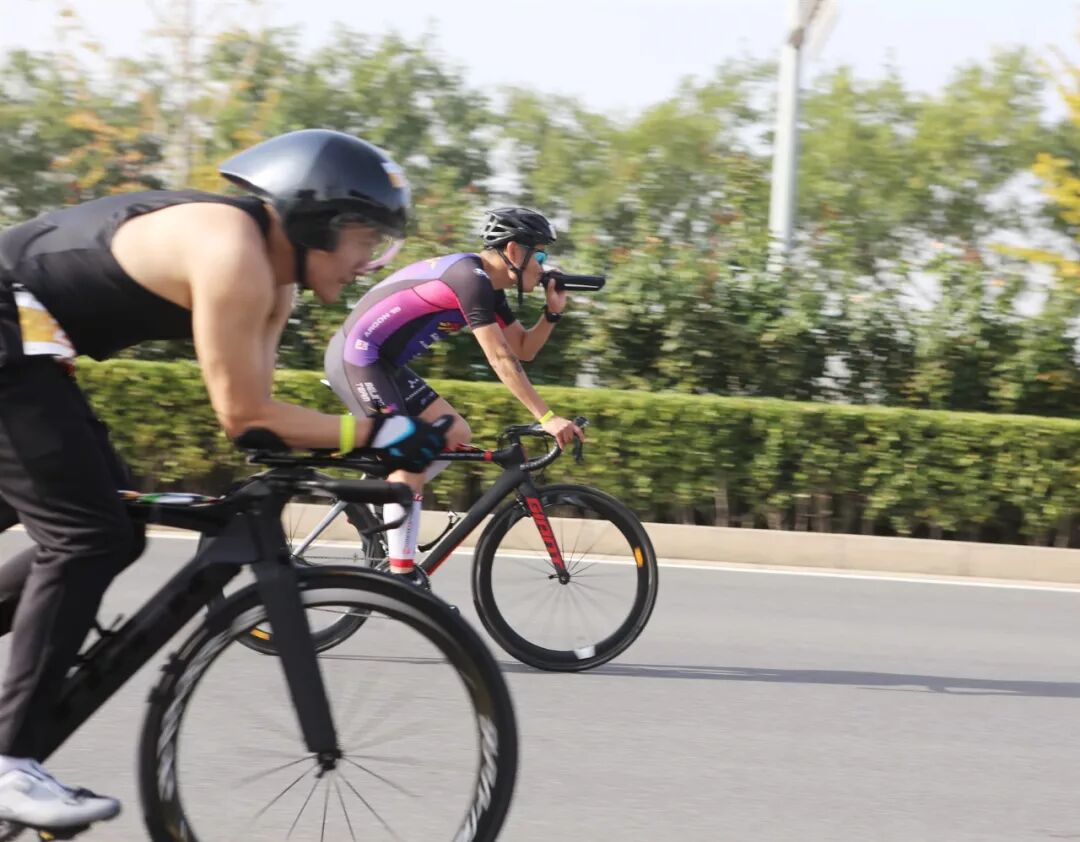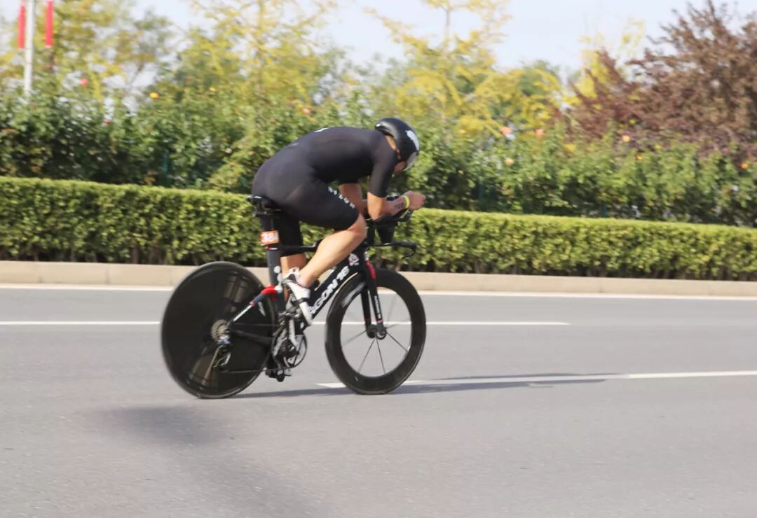 完成游泳比赛后,选手们马上转入自行车赛段,这对于刚刚游完泳的运动员也是一项不小的体能挑战。自行车赛中,选手们风驰电掣,铁三自行车赛可不像我们平时骑车那样简单,骑行之路对“铁人骑士”而言既有意志的考验,也有耐力的挑战。变速、爬坡、下坡、过弯、刹车、滑行,都有严格的控制要求,满满的都是技术含量。