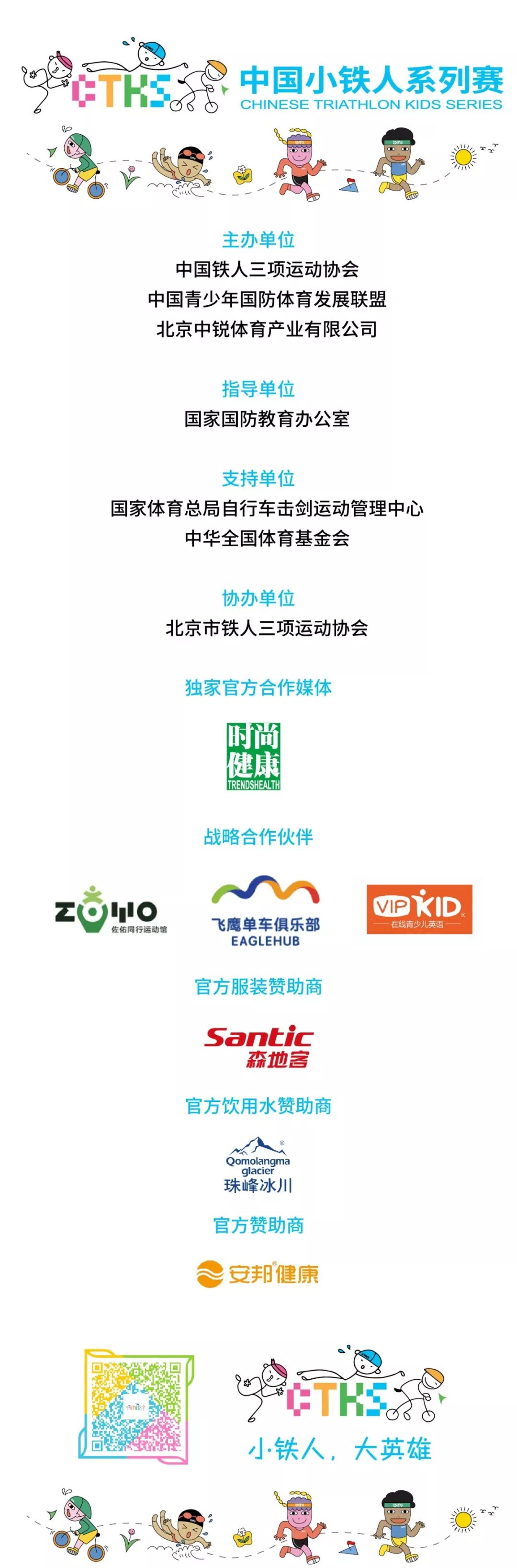 中国小铁人系列赛由中国铁人三项运动协会、中国青少年国防体育发展联盟、北京中锐体育产业有限公司联合主办。