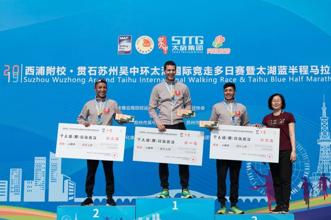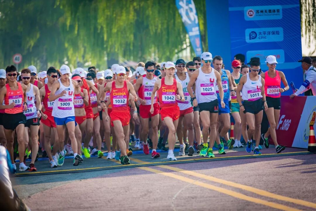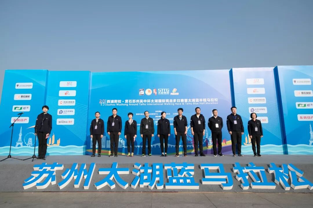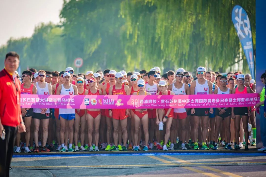 来自世界各地的竞走专业选手、竞走国家队,以及太湖蓝半程马拉松近万人,一起奔跑在太湖之滨,共同领略吴中金秋之美。国际田联理事、亚田联副主席,中国田径协会副主席、国家体育总局田管中心党委书记王楠女士,江苏省体育局副局长刘彤先生,苏州市政府副市长王飏先生,苏州市体育局调研员龚冀铭先生,中共苏州市吴中区委书记唐晓东先生,中共苏州市吴中区委副书记、区政府区长陈嵘女士等相关领导出席了开幕式。世界冠军陈艳青、明星张陆作为领跑嘉宾出席。