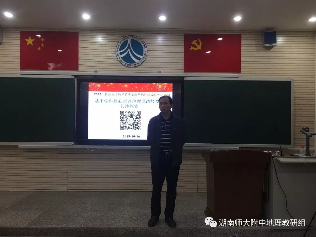 最后,长沙市教育科学研究院地理教研员刘玉岳老师做了《基于学科核心素养地理课改转型升级长沙探索》的报告,阐述了地理教育新时代的机遇和挑战,对新课标、新高考、新教材背景下地理教师如何培养学生核心素养进行了分析,提出了长沙“五有四化”地理教学的新主张。