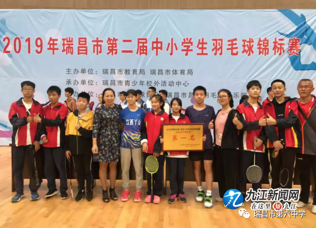 10月12日,2019年瑞昌市中小学生羽毛球锦标赛颁奖典礼在该市体育公园举行,瑞昌六中荣获该市城区初中组团体总分第一名的佳绩。