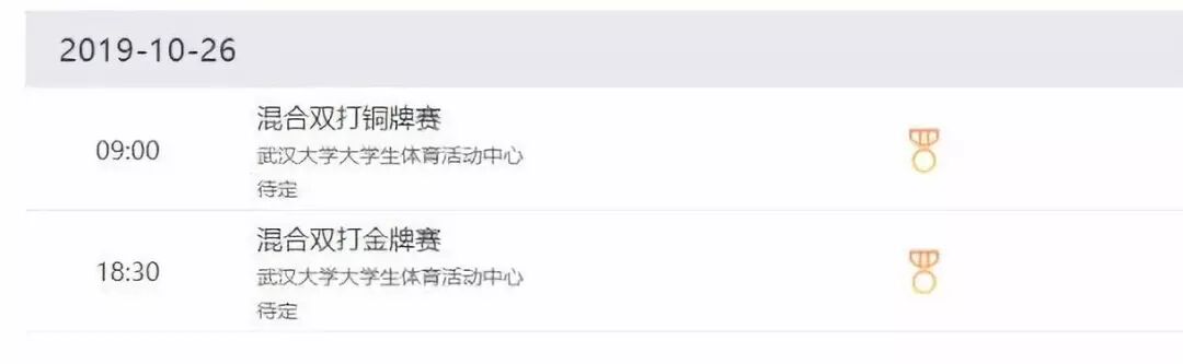 敲黑板!10月23日的男子团体比赛将产生军运会羽毛球项目首金,剩下的男子单打、男子双打、女子单打、女子双打、混合双打5枚金牌将全部在10月26日产生。