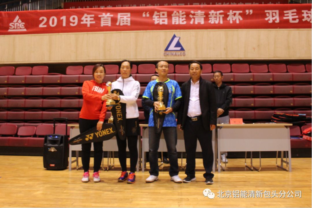 经过了两的激烈角逐,单双打冠军、单打亚军落入兰州铝业代表队,双打亚军,单打季被包铝业热电厂代表队取得,包头分公司吴经理、曹经理、铝能清新王总分别为获奖队员颁奖,包头分公司获得了优秀组织奖。