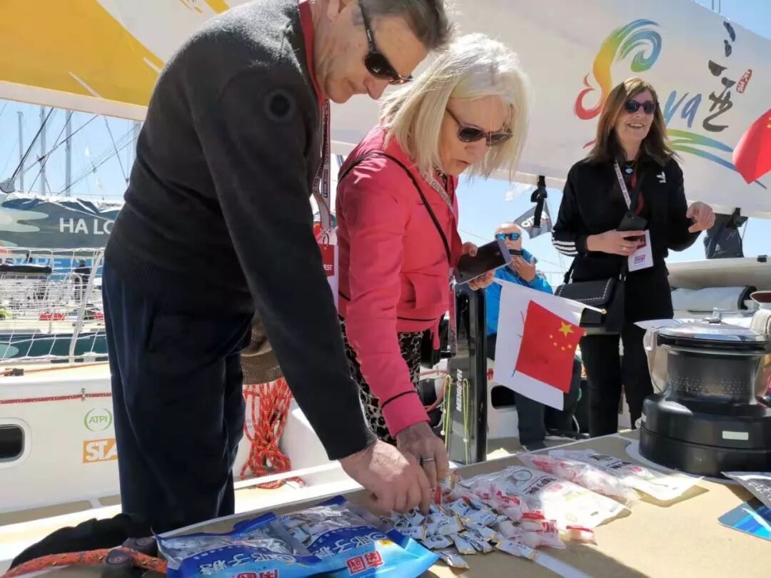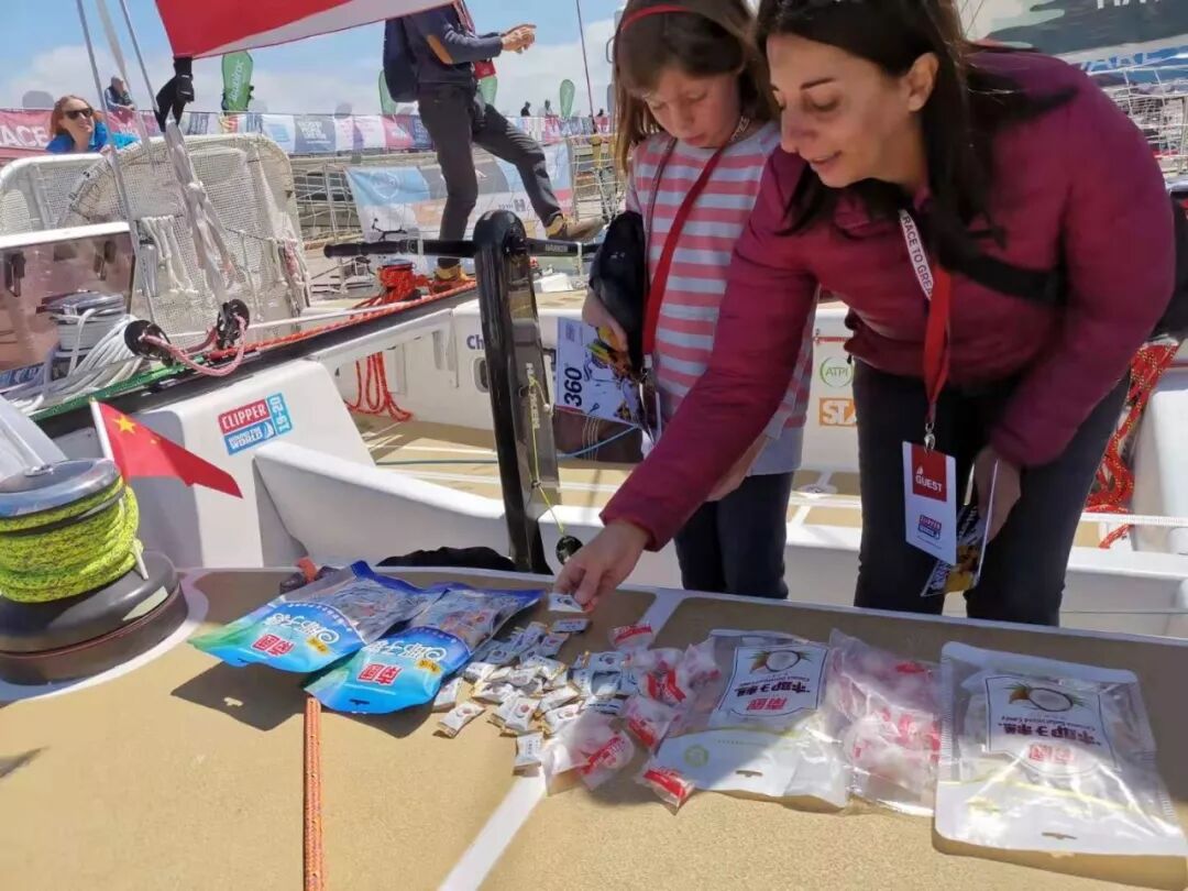 三亚号上,游客探秘环球赛船的构造、功能,对海上航行的饮食起居充满好奇,频频提问三亚船员、接连竖起大拇指表达钦佩之情。三亚大使船员们也借此机会积极推介三亚热带度假天堂的旅游风光,从三亚带来椰子糖和椰壳手工艺品专门赠送给到访游客,令当地民众感受到三亚浓浓的好客与热情。