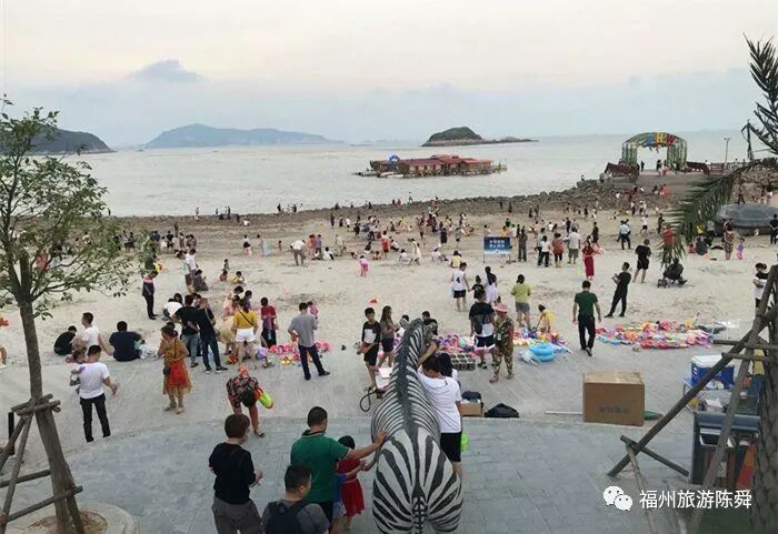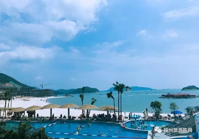 连江定海湾的九层高的游客服务中心宛如一艘巨轮,淡蓝色玻璃外墙与海之蓝连为一体;五六百米长的柔软沙滩上,孩子们卷起了裤管,或奔跑,或铲沙;观景台上、棕榈树下、游泳池边,游客三三两两,或观海听涛,或拍照留影。