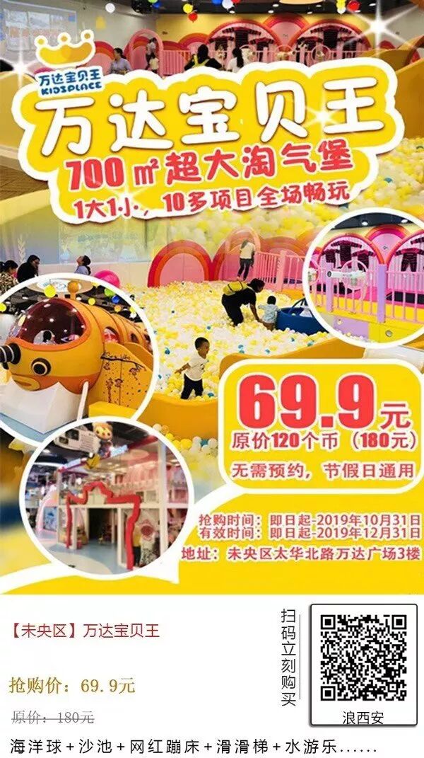 69.9元抢购万达宝贝王亲子套餐,全场十多项目畅玩不限时,海洋球+沙池+网红蹦床+滑滑梯+水游乐......超多游戏