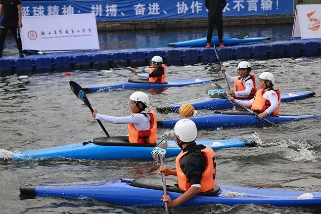 皮艇球,就是划着皮划艇打水球。球是标准的水球,艇是特制的皮艇。在35米X23米的赛场中进行5V5的对抗,集篮球、足球、皮划艇运动于一身。