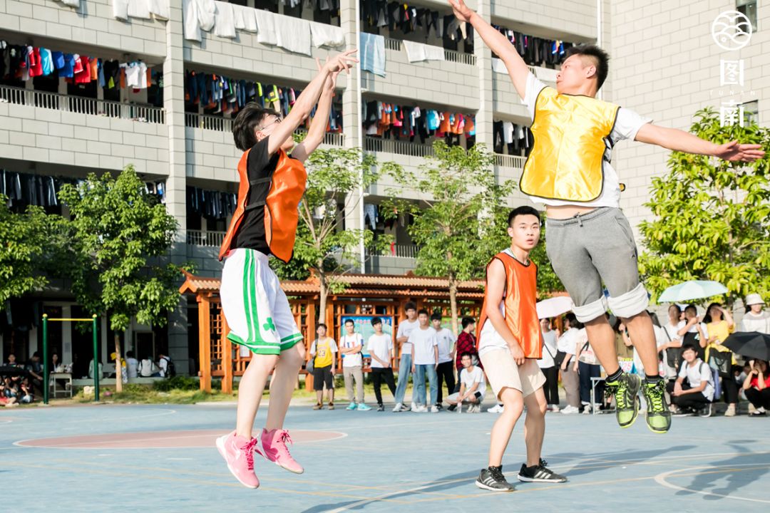 篮球场总是充满了男生的汗水,