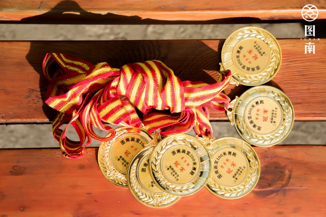 金色的奖牌挂在胸前,