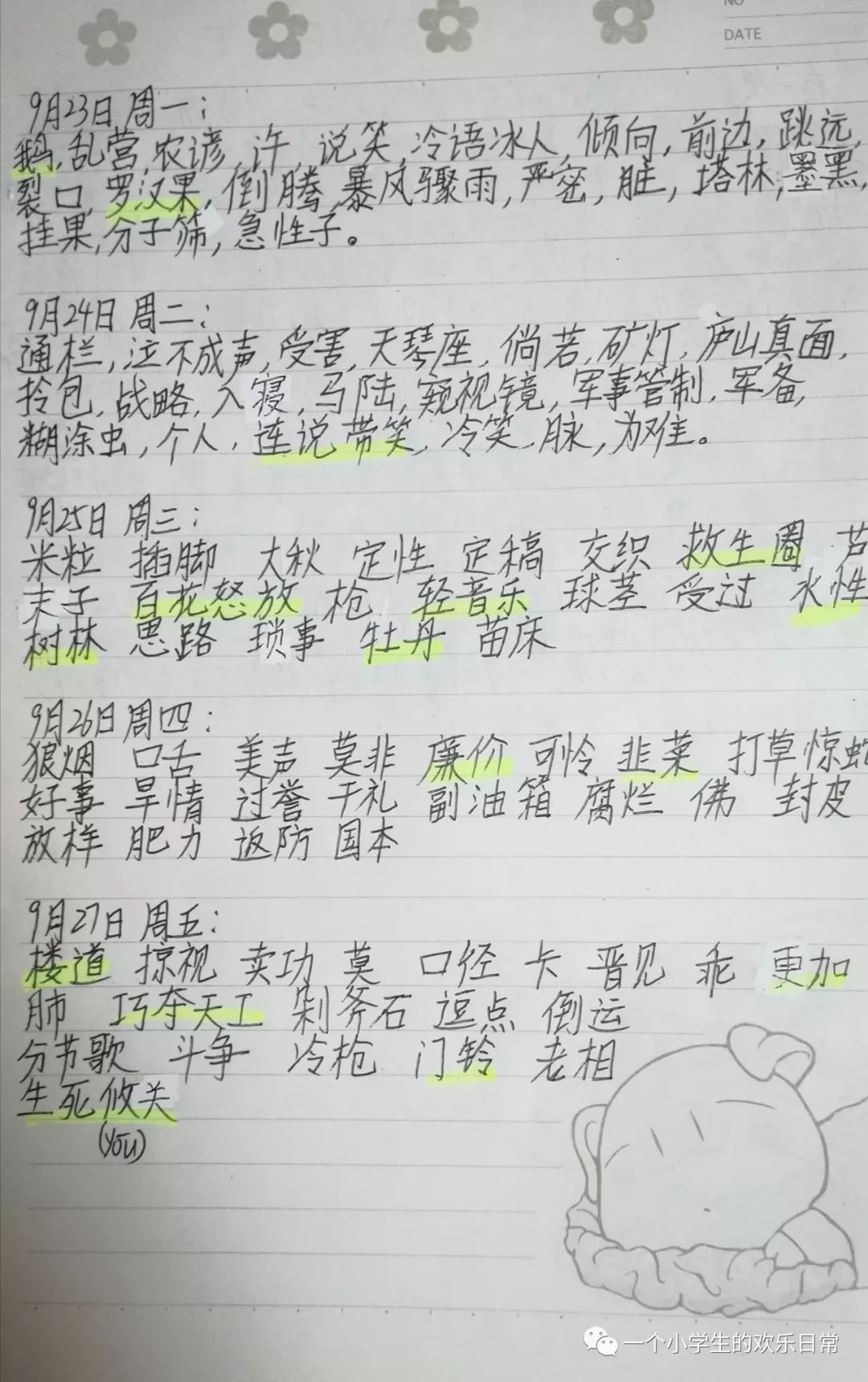 窦神:每天用5分钟在词典里抄词20个(成语或词语或俗词),每周抄100个,每周运用一次,从100里选至少15个词,不管是作文还是周记,运用到一段话里去就可以。