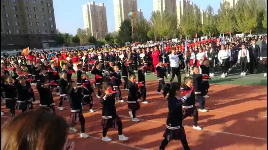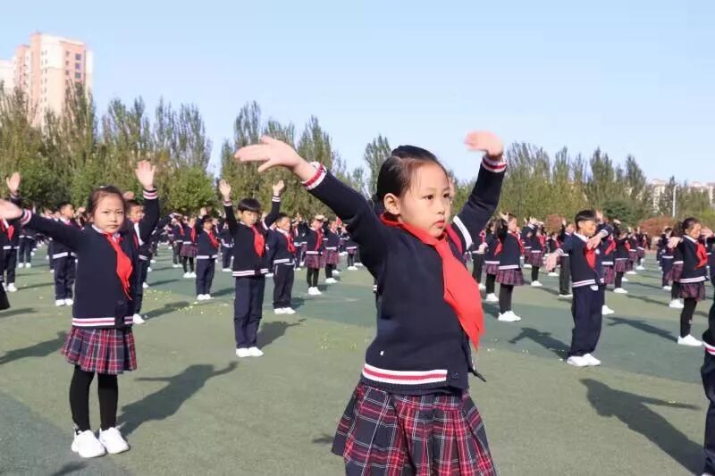 二、三年级的宝贝们带来的是国颁操表演,可爱的孩子们像一株株嫩绿的新苗,像一簇簇即将盛开的蓓蕾,像一只只亮翅的雏鹰,沐浴在灿烂的阳光下,新世纪因为他们而生动,祖国因为他们而骄傲。我们期待,我们祝愿,愿雏鹰在风雨中磨练翅膀,去迎接新的挑战。
