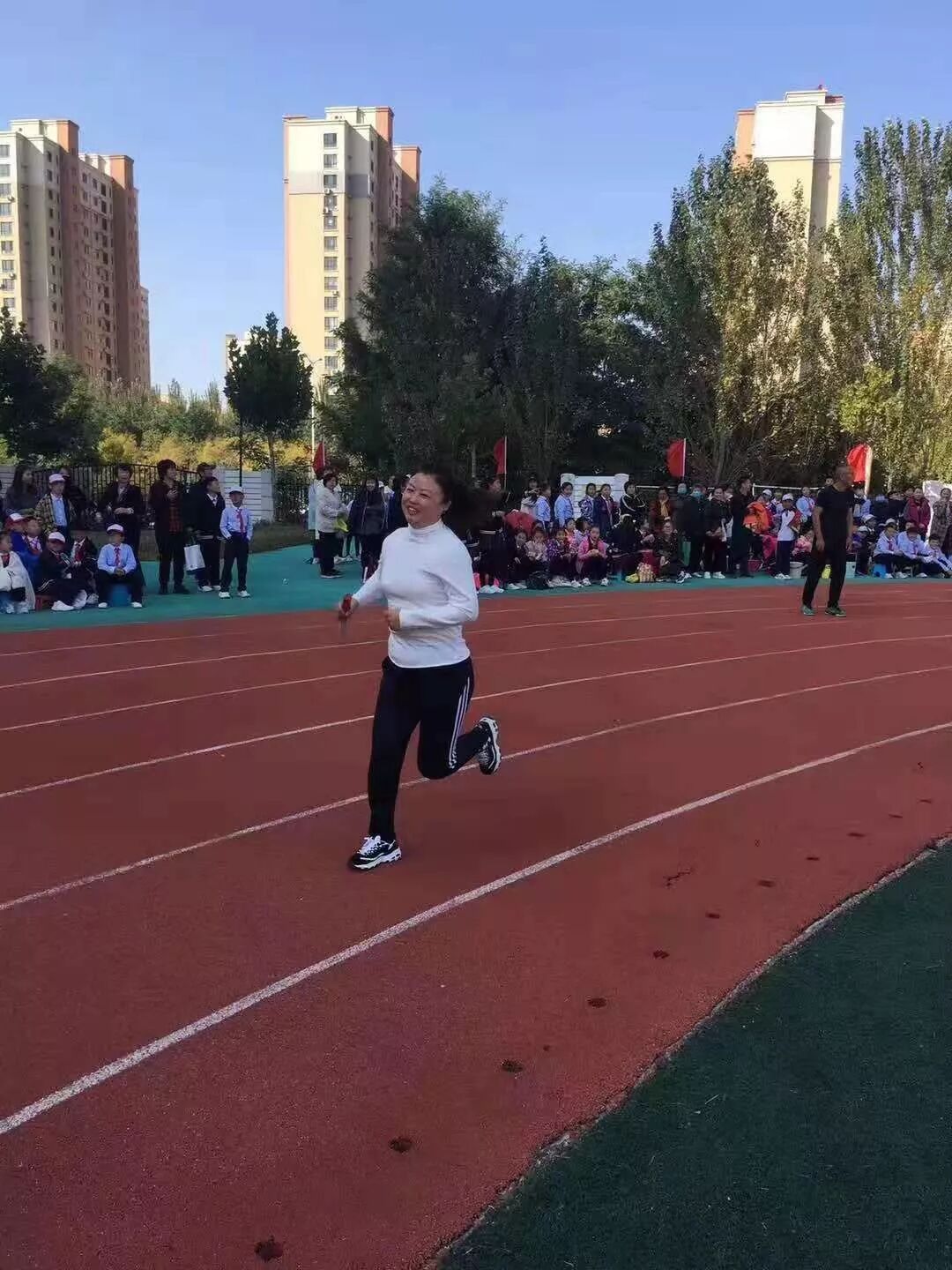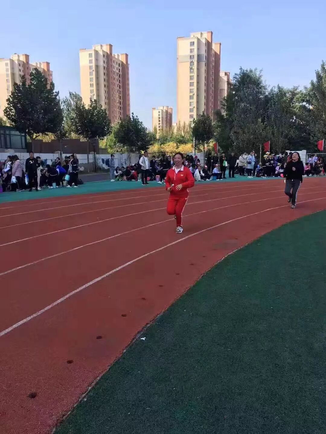 运动会怎么能少了我们最亲爱的老师和家长呢!为了增强教师集体凝聚力,我校运动会还组织了教工和家长接力赛,看,老师和家长们齐心协力;听,同学们的呐喊声,把整个运动会推向了高潮。
