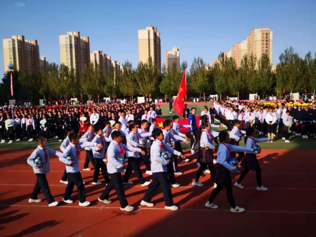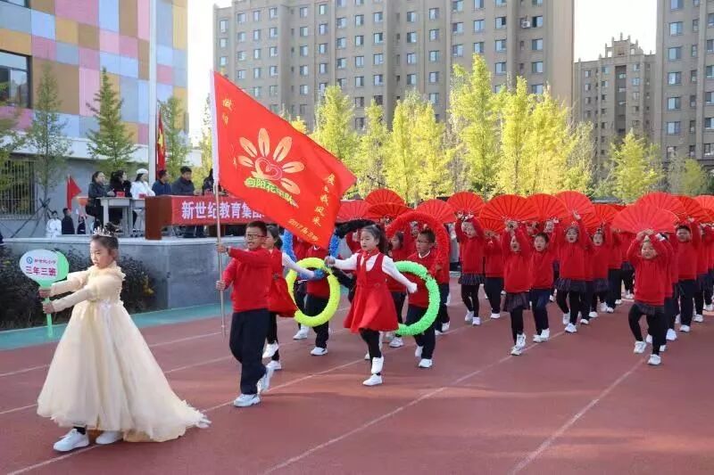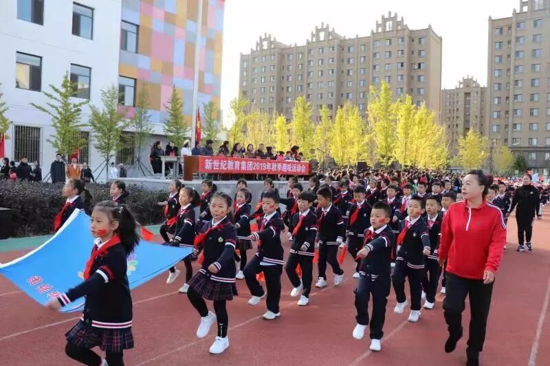 10月11日上午,晴空万里,蔚蓝的天空中点缀着丛丛白云。骄阳之下,新世纪南、北校区两千余名学生身着节日般盛装,在南校区运动场隆重举行2019秋季趣味运动会。新世纪教育集团北校区毛凤娜校长主持开幕仪式。