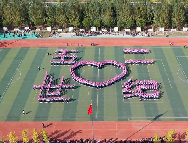 场上形成了一个“五二”“心世纪”字样,寓意新世纪小学建校五周年,新世纪教育集团成立两周年,谐音寓意“我爱新世纪”,新世纪是个响亮的名字,让我们共同祝愿新世纪永远走在教育的前列!