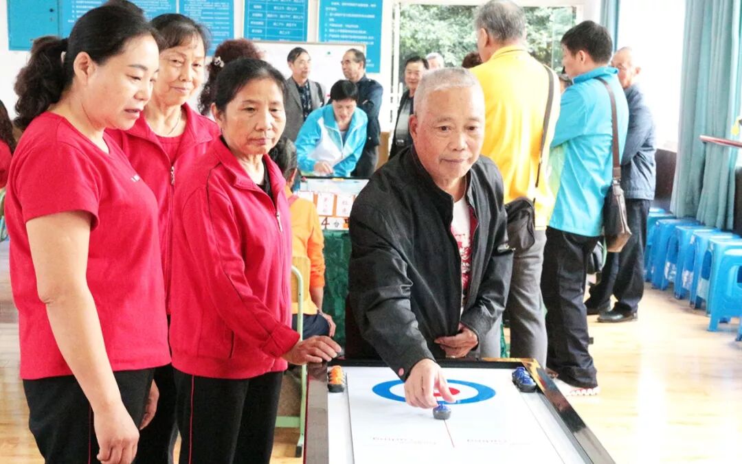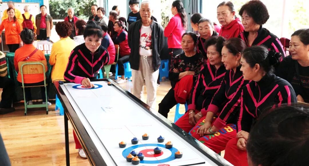 桌上冰壶球运动出现的时间不长,成本低,占地少,趣味性强,赛事举办方便,安全性高、参与性强,有助于老年人保持记忆思考能力,非常适合老年人,深受老年人喜爱。桌上冰壶球运动在中和街道老年人中开展广泛,街道老年大学开设有桌上冰壶球班,每个社区老体协基本都组建有桌上冰壶球队。中和街道老体协桌上冰壶球队由于水平高,多次代表成都高新区参加成都市和四川省老年人体育运动会比赛,并取得了骄人的战绩,在今年成都市老运会上,中和代表队荣获桌上冰壶球冠军,在今年省老运会上获得桌上冰壶球女子单打冠军、第三名、第四名、第五名和混双第三名。