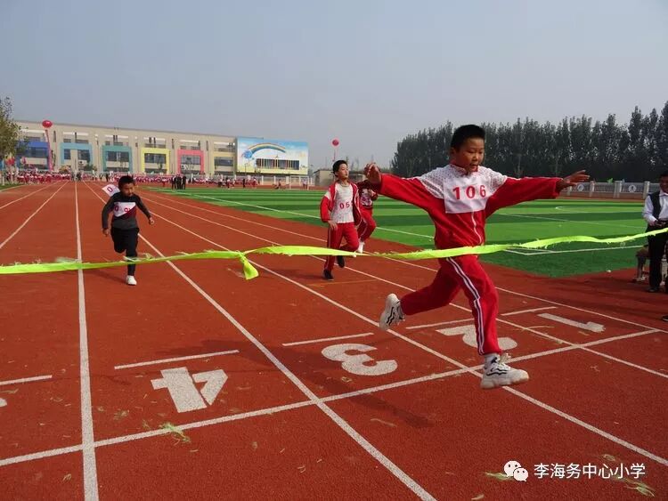 李海务中心小学第一届秋季运动会经过了热烈、精彩、公正的比赛,取得了圆满成功!相信老师和同学们都能把这次运动会表现出来的坚韧不拔、永不言败、团结协作的精神保持下去,我们的生活会更加充实,我们的人生会更加多彩!