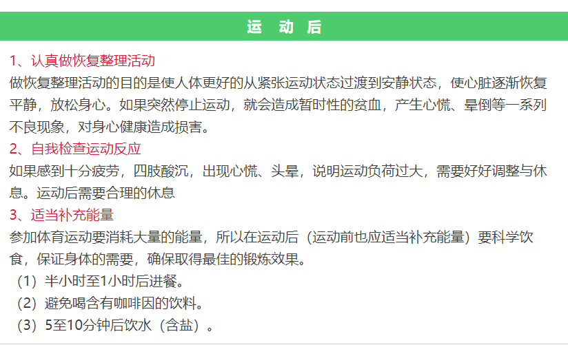 运动全部结束后,恢复整理要做好。
