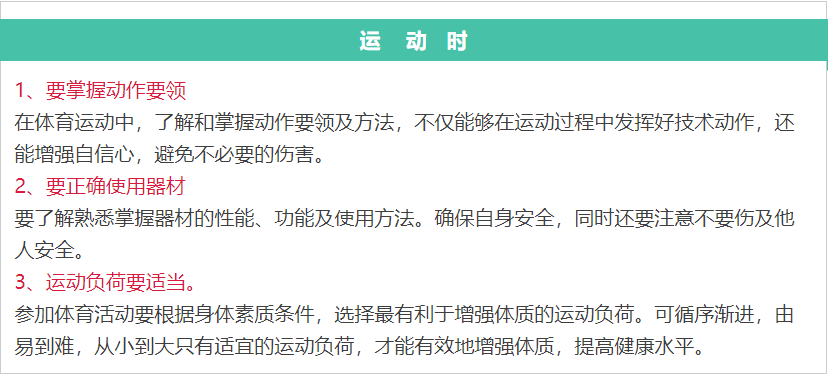 体育运动安全口诀