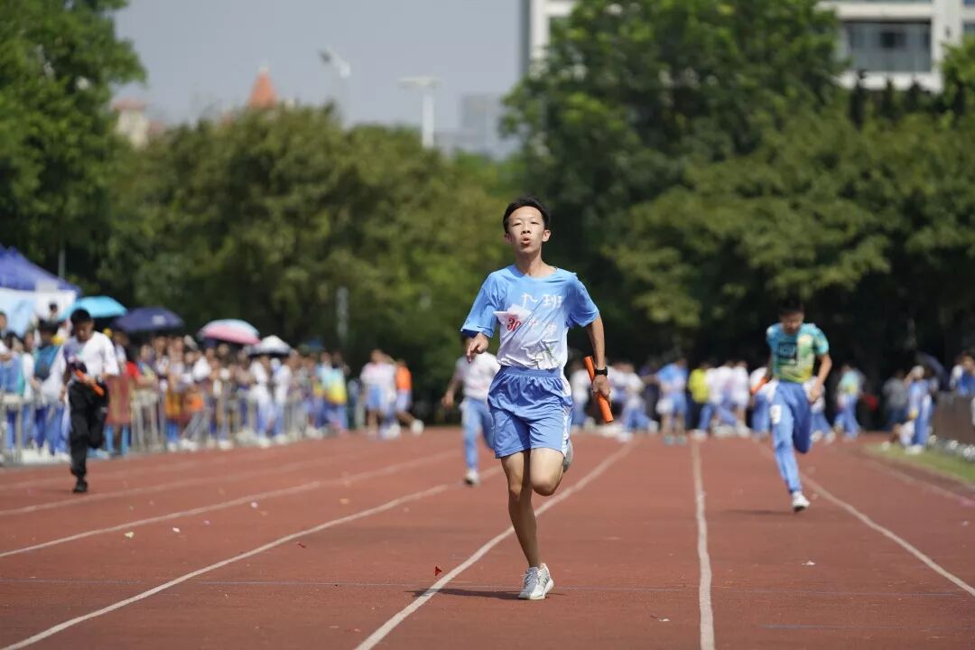 “3,2,1,开始 !”裁判员铿锵有力的声音还在空气中回荡,运动员们已经像离弦的箭一样冲出了起跑线——高速、精准,目标明确,这是对他们最好的形容。各种五彩的班服在跑道上幻化出一条条彩虹,牵引着看台上的观众视线,一起奔向终点。这是华英学校第19届校运会上精彩的一幕。