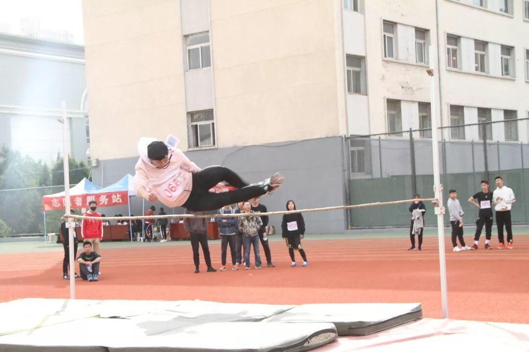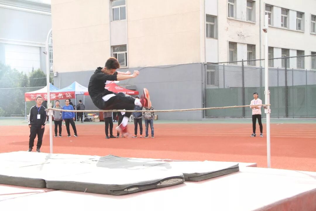 比赛正式开始,首先是男子跳高,十点进行女子跳高。各位运动员一次一次助跑、弹跳、腾空跨越、落地,在空中划出一道道完美的弧线。过杆的运动员们满怀期待与信心准备下一次的跳越;碰杆的运动员也毫不气馁,仍认真对待着每一次的补跳。观赛者的加油呐喊声更加高涨了运动员们的士气与热情,随着横杆持续上升,赛场上的比赛人员逐渐减少,压力增大的同时经验也更足。最终男子跳高横杆停在了1.5米的高度,建筑学1602的何俊甫赢得比赛胜利;女子组横杆停在了1.25米的高度,工业设计1803的辛悦铭获取胜利。