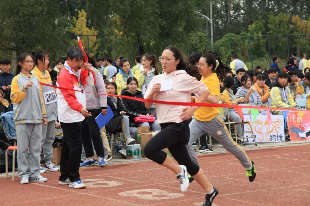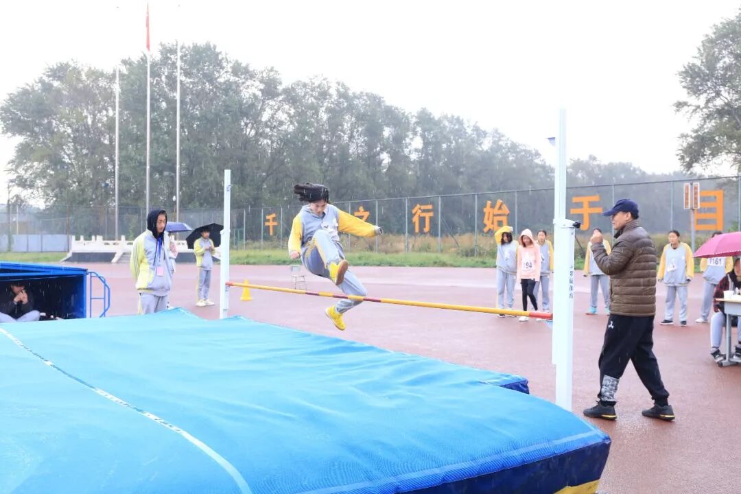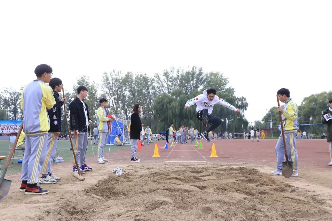 开幕式结束后,各项比赛正式进行。运动会分为学生比赛和教工比赛两个部分,同时不同场地进行。学生比赛共有40个项目,总计1300余人次参加,分为径赛男女生中长跑32项和田赛男女生跳高跳远8项。裁判老师们赛前点录、嘱咐安全注意事项、发布比赛指令、记录比赛成绩,一切都紧张而有序地进行。选手们摩拳擦掌做好赛前热身运动;同伴们陪同左右为其拿衣服、物品,鼎力相助;观众们齐声呐喊、鼓劲加油。跳高的同学身体轻巧腾空而跃,栏杆在不断加高;跳远的同学爆发力十足,加速起跳一系列动作完成得干净利落;长跑项目是最大的挑战,能够报名参加的都是勇士,跑完赛程运动员已累到极点,他们的同伴冲上前去给他们披上衣服保暖;最精彩的就是短跑和接力项目,运动员们如骏马、如小鹿一般在跑道上驰骋。每当这时纳喊的声音此起彼伏,运动场洋溢着健康欢乐的氛围。