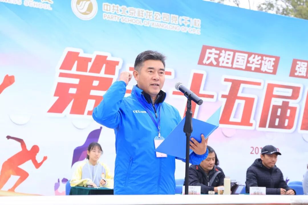 之后,学校党委书记程彬老师祝贺第三十五届运动会胜利召开致辞。他说,“随着学校体育教学、师生体育锻炼的蓬勃开展,全民健身、健康中国已在校园里蔚然成风。要引领学生德智体美劳全面发展,用体育传递精神力量,用体育建设健康中国。”同时鼓励大家实现中国梦必须弘扬爱国主义精神,要为实现中华民族的伟大复兴而不懈奋斗。