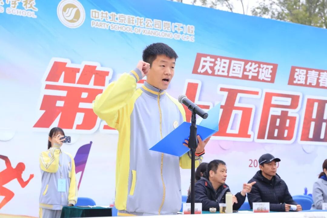 体育教研室主任、总裁判长刘桂庆老师代表所有裁判宣誓,他表示:会公正、无私、准确、及时地做好裁判工作。运动员代表燕政廷同学宣誓,诚实参赛、维护公平体育精神。