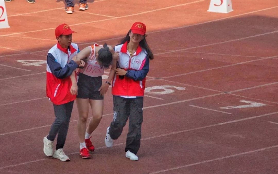 在听到号令的那一刻,她们毫不犹豫的冲向了前方的终点线,挥洒汗水!