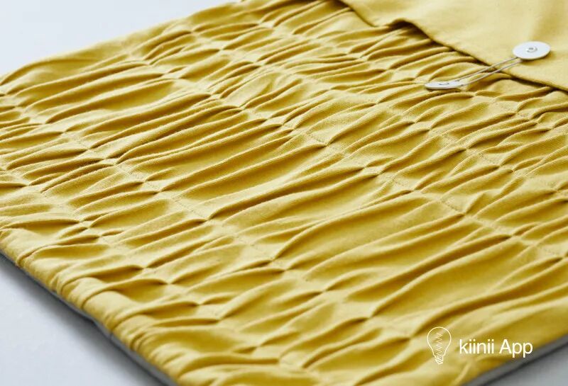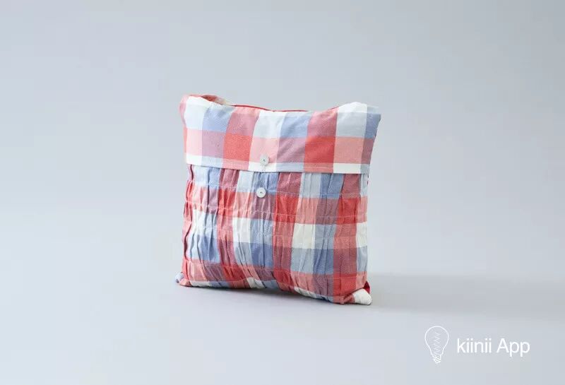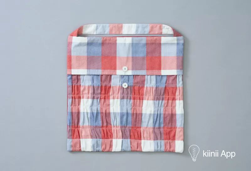 剪下布料后进行褶皱加工,最后加入枕芯缝合,或者缝上相应的背带。