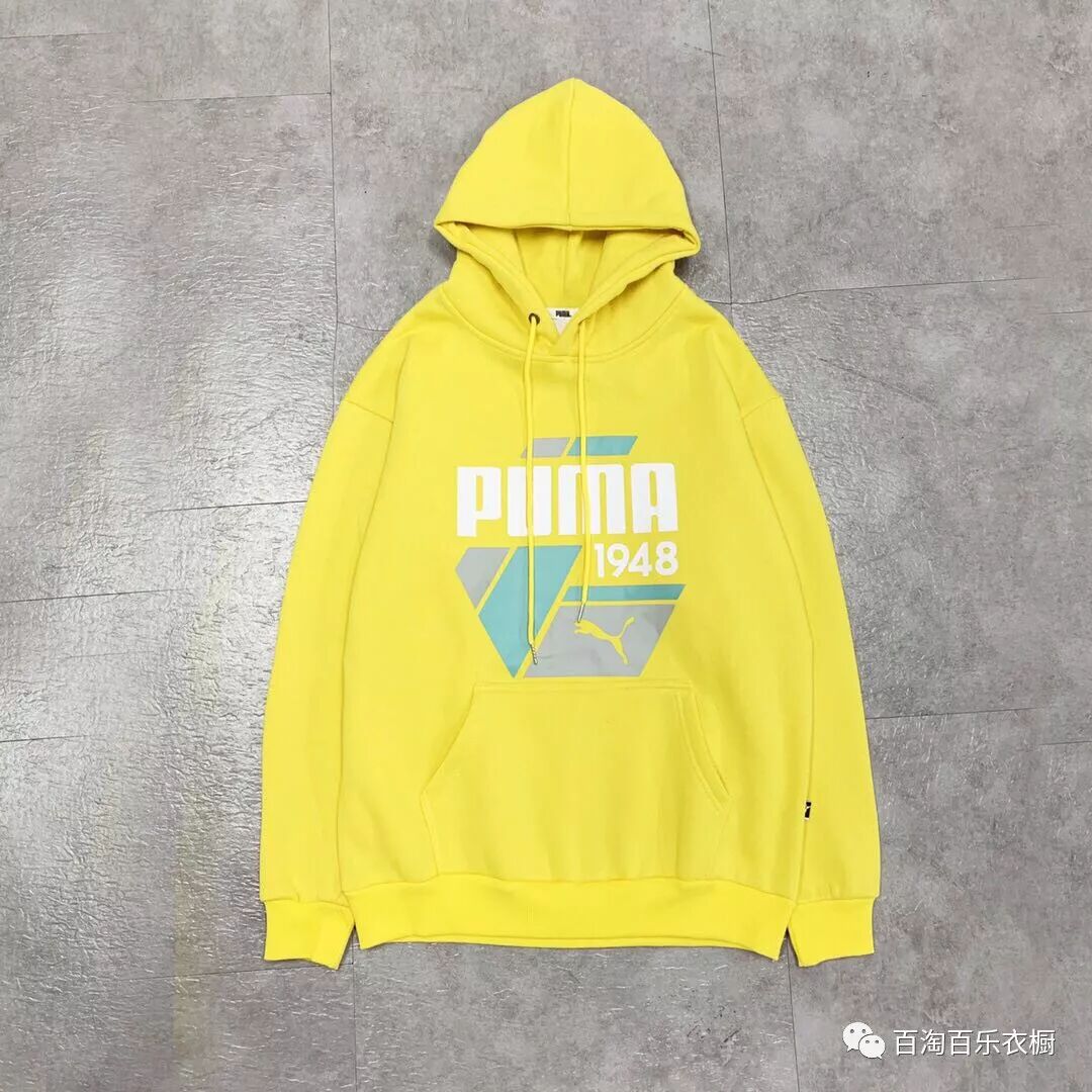经典的黑黄两色.胸前超大1948彪马初始款印花.印花完美随意拉扯.采用340g纯棉加绒面料.所有辅料单独定制.质量好到爆.上身效果超赞.