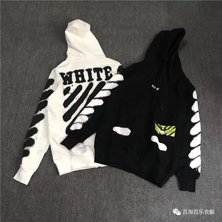 OFF WHI* C/O VIR* ABL* 2019秋冬男女情侣连帽衫基础泼墨虎纹抓绒加厚卫衣