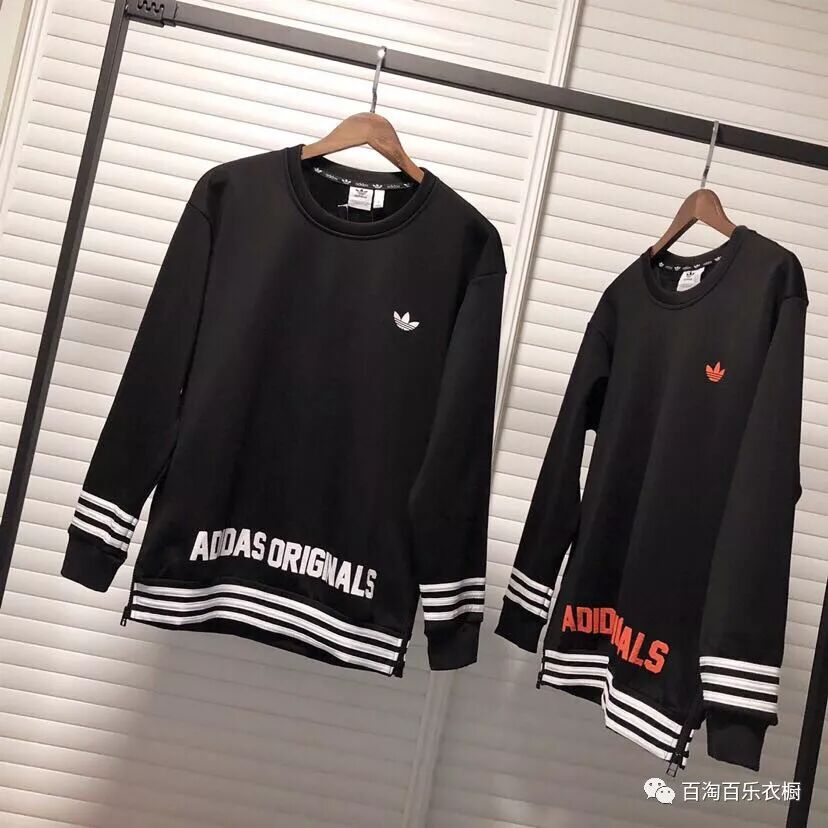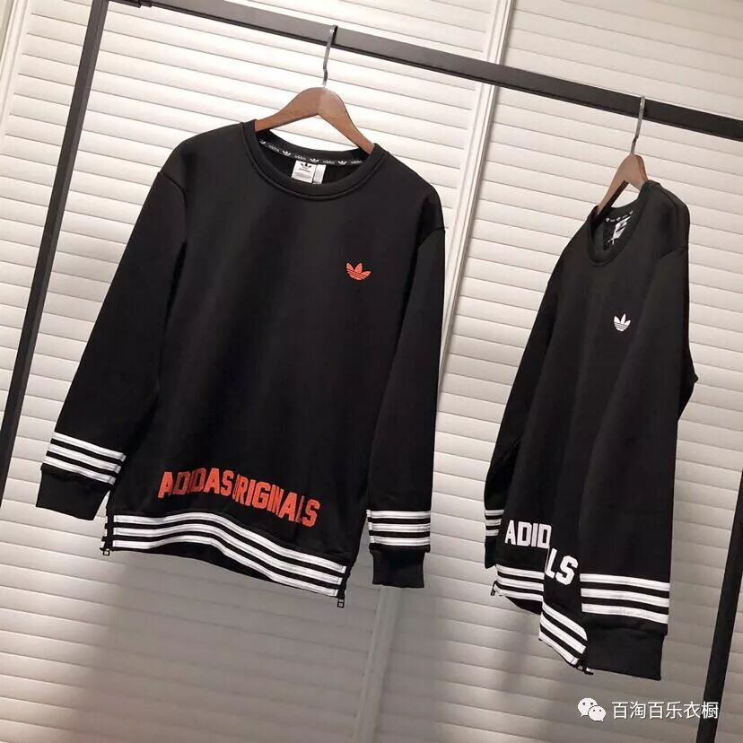 2019新品同步!Ad三?草水貂绒加绒圆领卫衣上市!专柜同步在售,货号:AD1228,本款采用纯棉罗马布面料内里复合450g水貂绒加厚,手感舒适贴身超级保暖!胸前三?草小标,底部以及袖口三杠织带贯穿,非常好看!底部Ad Originals立体发泡印花技术!领口同样采用官方领压条!双侧底部带原版拉链设计,处处细节匠心设计,男女同码,黑红/黑白双色可选,值得入手的一款热销圆领加绒卫衣!