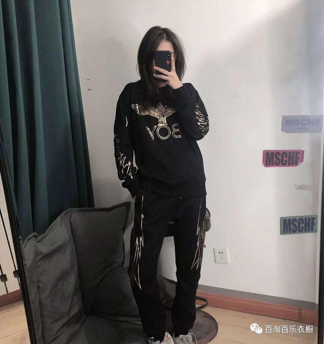 冬季最新款个性大翅膀烫印休闲套装 情侣款??烫金烫银印花 专柜同等纯棉复合绒面料 个性对称大翅膀加持了整套衣型 打破以往古典的基础风格 个性与时尚并存 ?有了它就有了回头率的保证?细节处理完美 三标齐全 舒适柔软 绝对高品质??