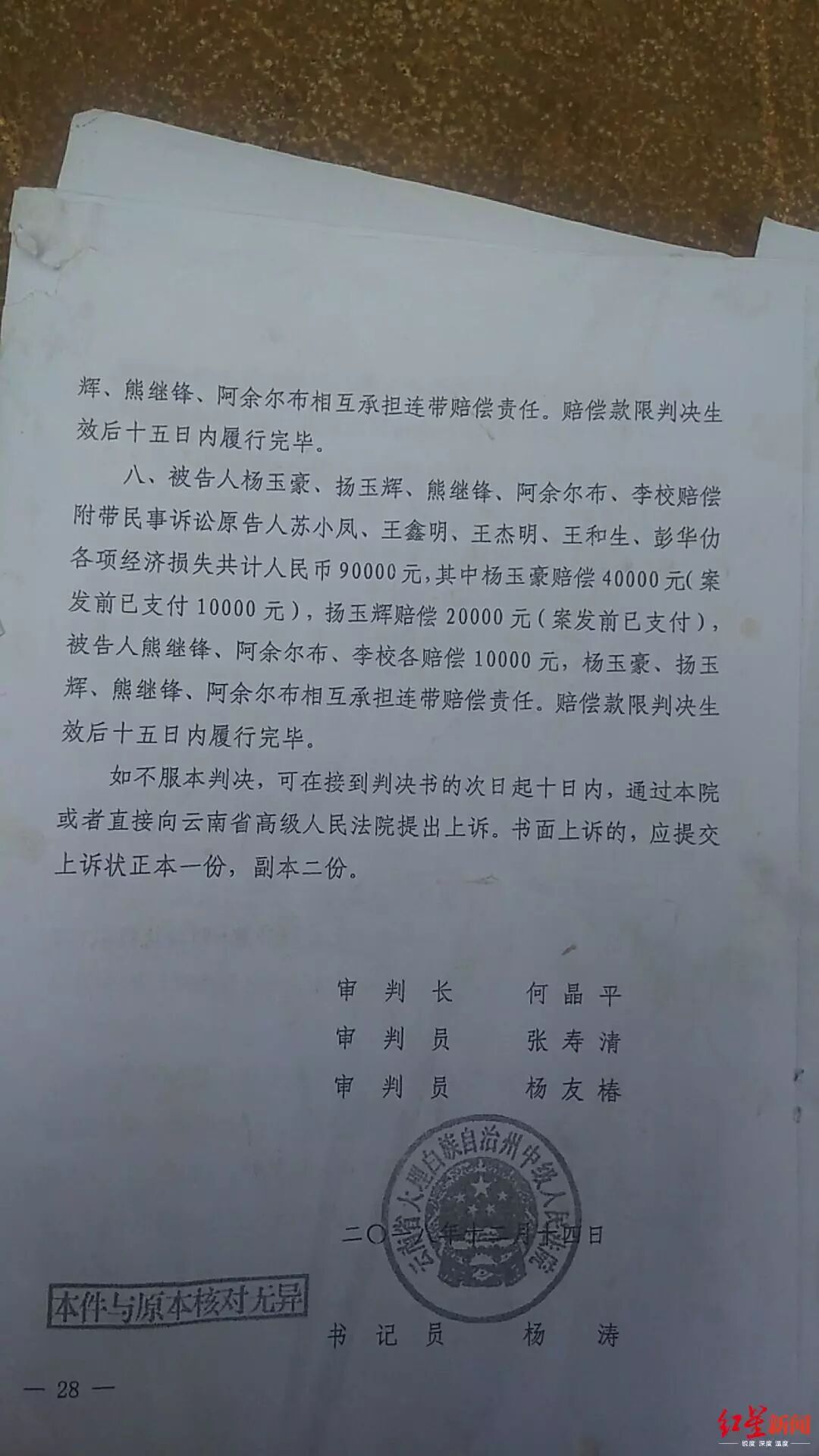 后来杨玉辉的弟弟杨玉豪看到,来人分两群,一群站在院心,一群坐在厨房门口的台坎上。熊芬燕提供的当日照片显示,来车分别为大理、昆明、福州牌照,“一来就开到院子里堵住了去路。”