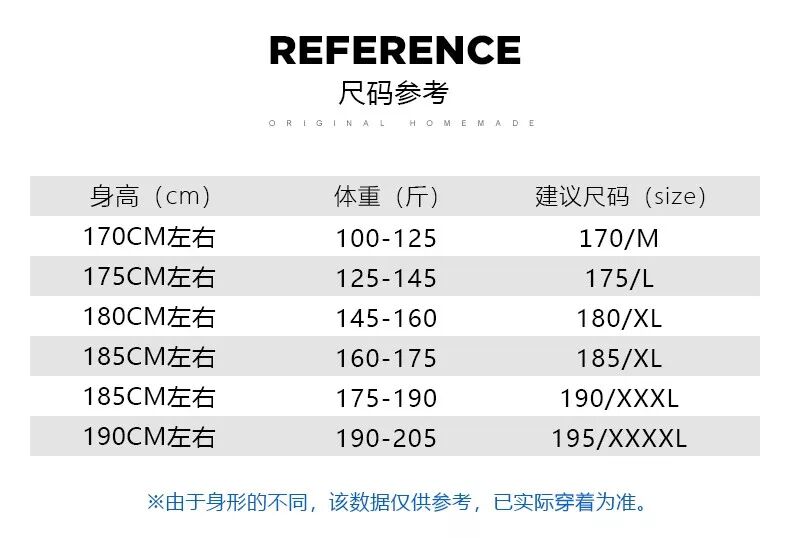 尺码 M170 L175 XL180 XXL185 XXXL190 XXXXL195