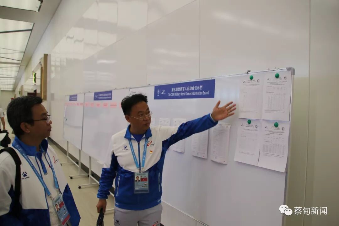 10月20日上午,中央气象台首席预报员,全国技术能手、“全国五一劳动奖章”获得者马学款专程到蔡甸射击、射箭比赛场馆考察军运会气象服务。第七届军运会蔡甸竞委会副主任、蔡甸区政府副区长朱义侠介绍军运会场馆建设及赛事安排情况,陪同检查射击比赛现场气象保障服务工作,并观摩25米手枪速射、50米步枪卧射比赛。