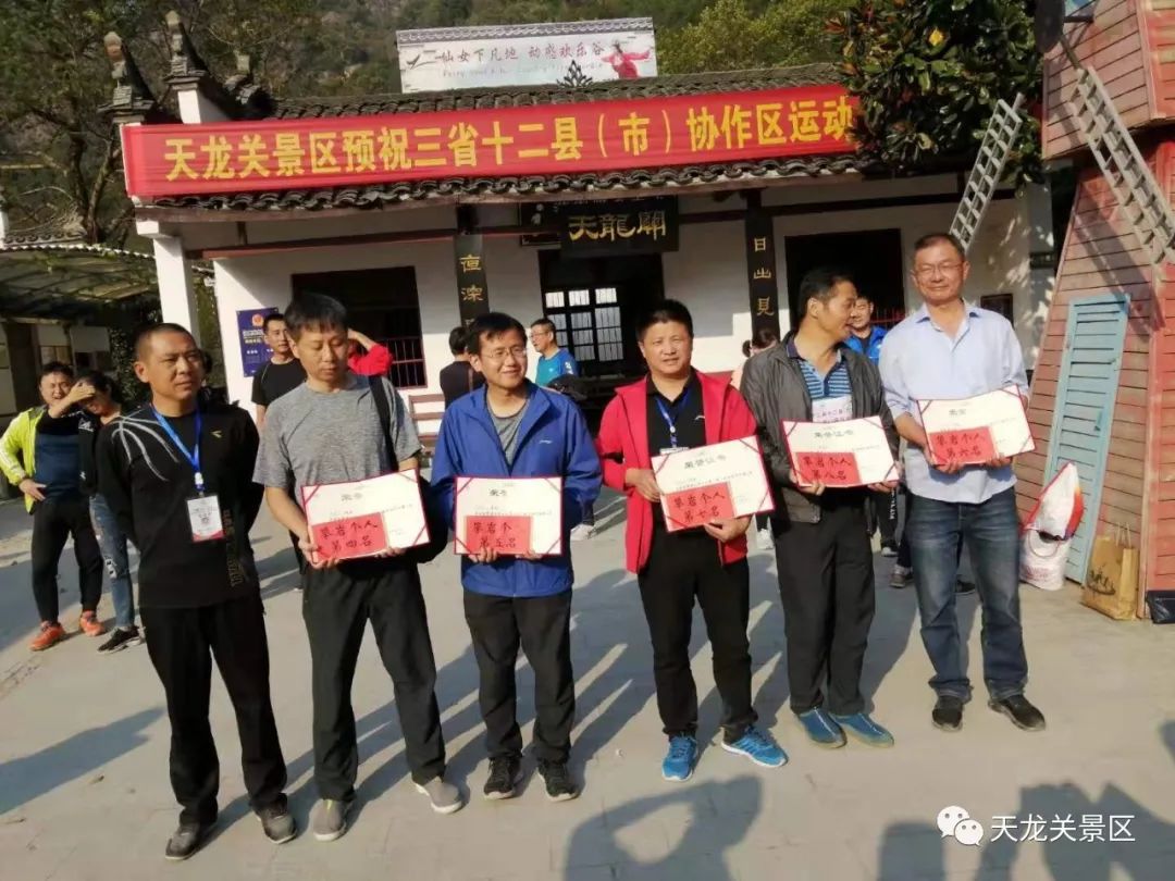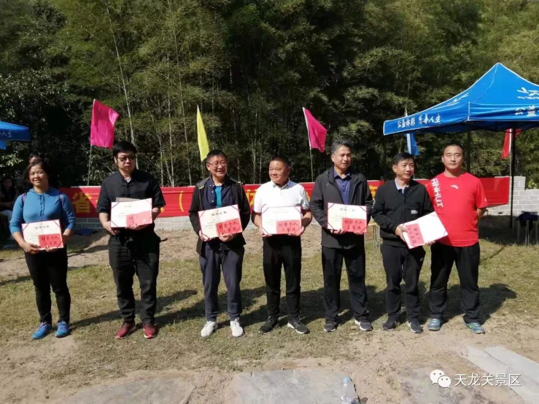 经过一轮轮激烈的角逐,在各项目获得优异成绩的运动选手们纷纷拍照留念,将他们此时此刻的喜悦及荣誉定格在天龙关景区的山水之间,至此,“皖鄂赣” 三省十二县(市)体育协作区第42届运动会户外攀岩、射箭、飞镖比赛在天龙关景区也获得圆满成功!