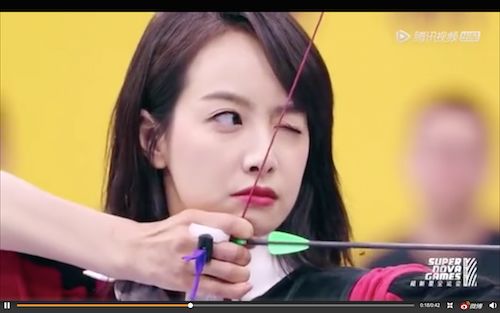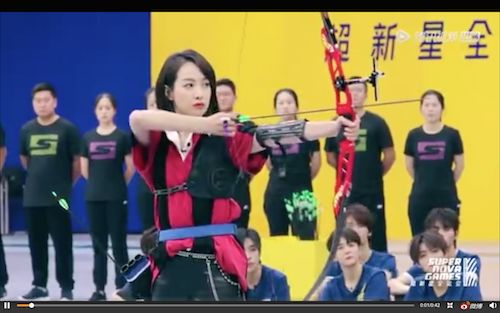 最新一期《超新星全运会》中,张绍刚邀请宋茜为运动员们做射箭项目展示,宋茜连射三箭,后两箭都射进了靶位正中的十环,而且第三箭直接射在十环上的第二箭上弹开了,两箭居然射中了十环的同一个位置。