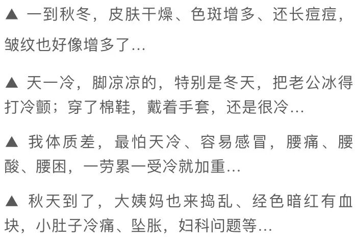 《黄帝内经》有“春夏养阳,秋冬养阴”之说。这是顺应一年四季阴阳交替的特点,“因时制宜”之举。就是告诉女人们,一叶知秋,早做准备。