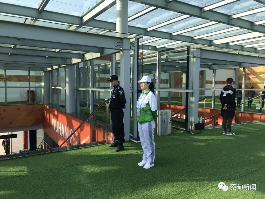 场馆内的志愿者来自长江大学武汉校区的学生,根据不同分工,他们身着统一的马甲或者制服服务于不同的赛事项目。