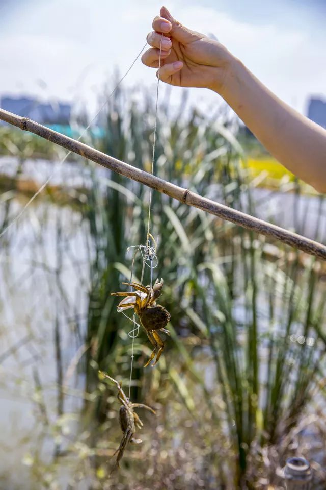 水田钓螃蟹