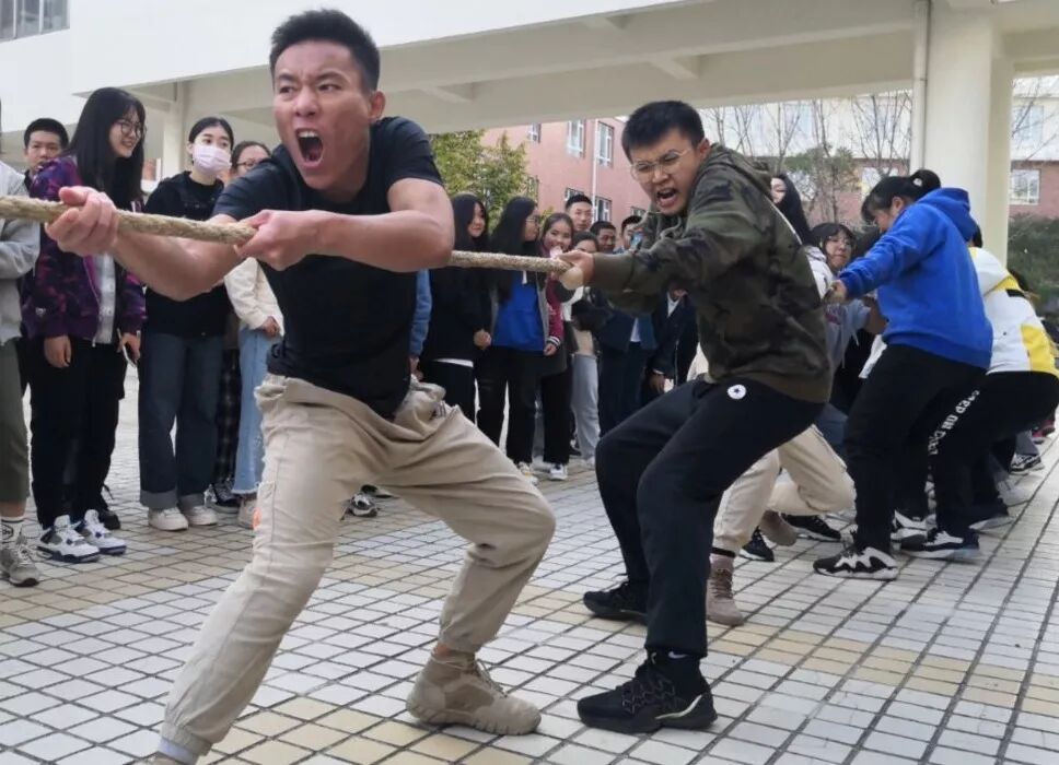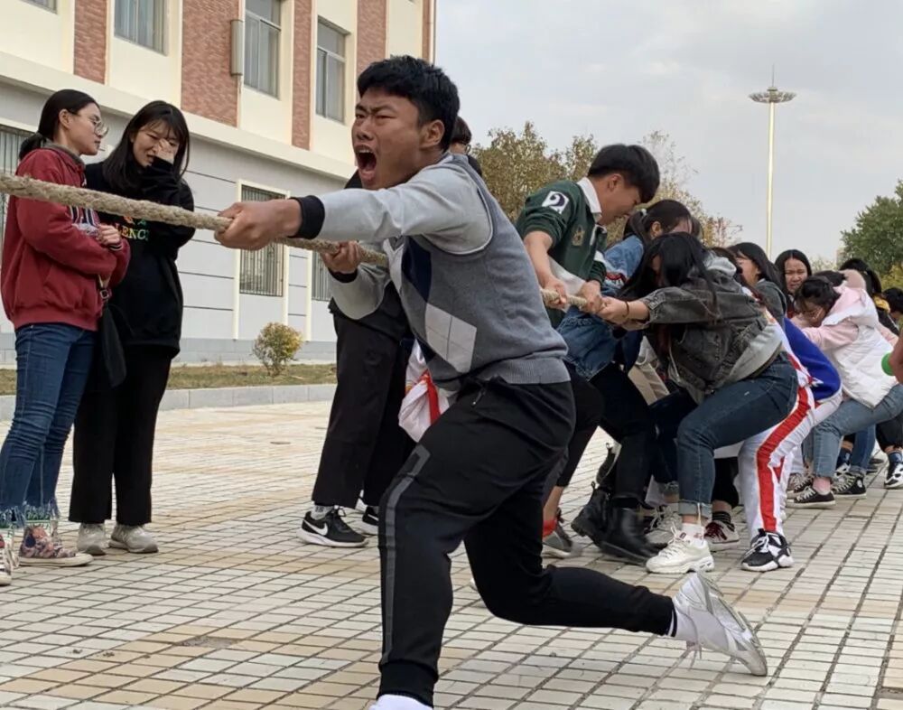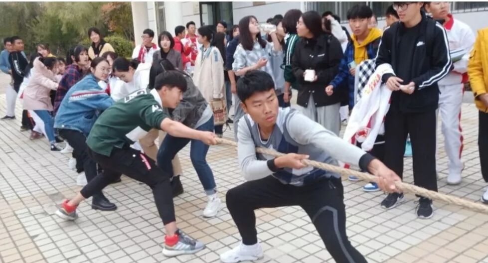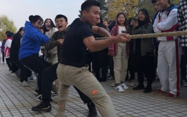 下午3:00,随着裁判的一声令下,本次比赛正式开始。双方队员紧紧抓牢手中的绳子,齐心协力的向后拉。在队伍前的男同学稳稳地守住阵地,跟随其后的女同学也毫不示弱,不放过一丝机会。热情的同学们在场外高喊加油!加油!震耳欲聋的声音此起彼伏,在这紧张时刻,队员们紧咬牙关,使尽全力,奋勇拼搏。