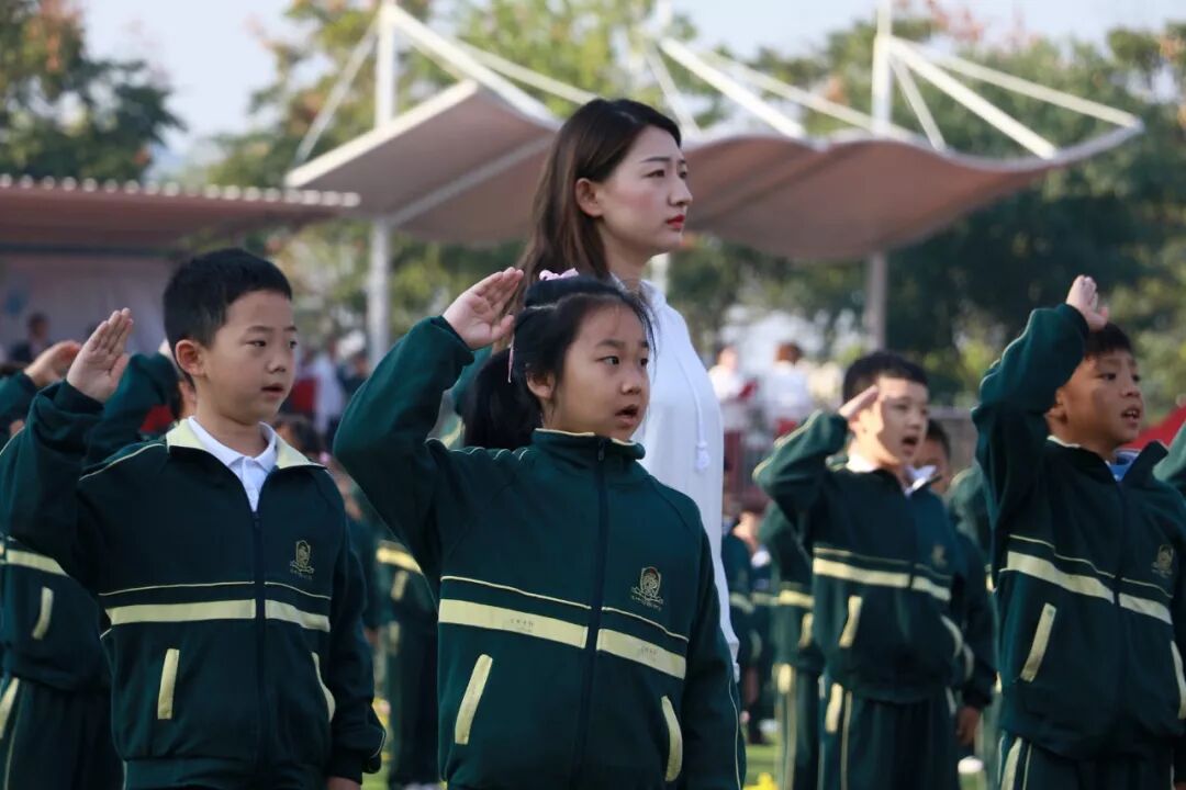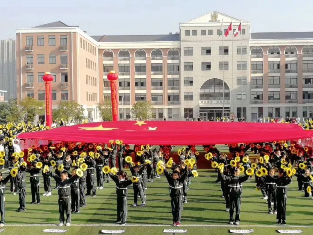 铿锵有力的古诗词朗诵 、大气磅礴的《国家》表演,巨大鲜艳的五星红旗让在场的家长和师生振奋不已,热烈的掌声不断响起。