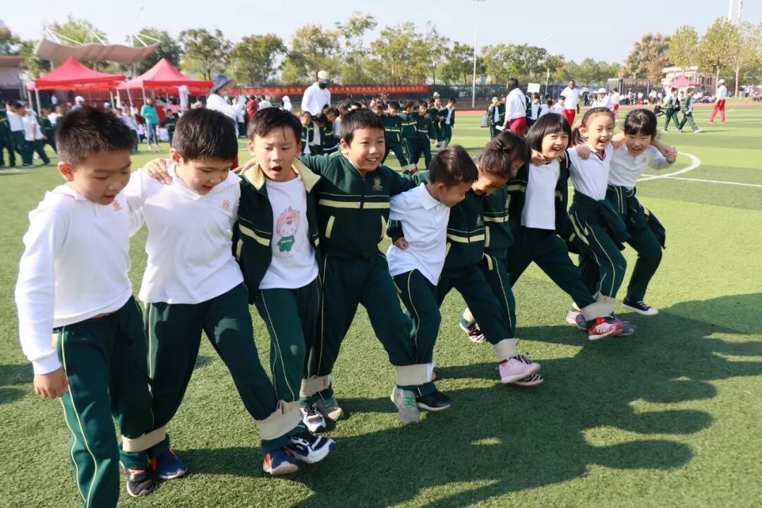 十人九足比赛中,小选手们不畏困难,用自信的微笑享受着运动精神带来的欢乐!