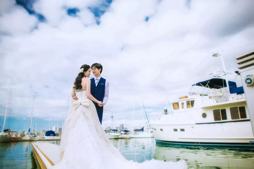 摄前准备:服饰妆容就绪,这座海滩城市随处都是最美的道具:草坪、绿植、古树,还有蓝的耀眼的天空,白的绵软的云朵;