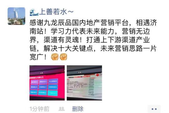 2016年和地产营销女神洪鸣院长一起创办九龙辰品,以“智库+平台+孵化”为模型,以“共享、利他、整合、联盟”为核心思维,致力于打造中国地产共享经济平台(地产阿里巴巴),2年时间整合全国400多家开发商、代理商和服务商,核爆快销总金额超5000亿。