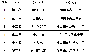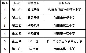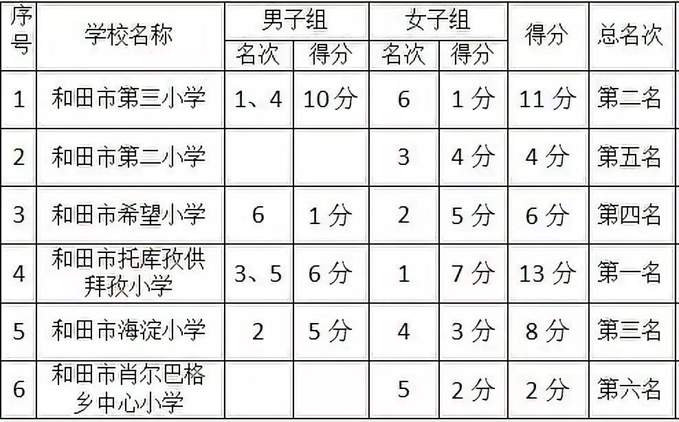 队员们经过两天天激烈的比拼,最终托库孜供拜孜小学勇夺小学组第一名,和田市吉亚中学夺得中学组第一。(个人赛绩下拉哦~)